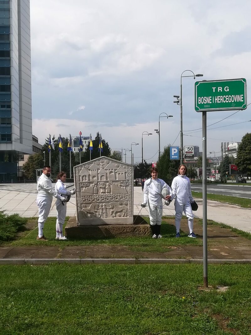 MK Walter izveo je performans na Skenderiji, kod spomenika Walteru, na Trgu BiH kod skulpture Stećak i na Marijin Dvoru.
